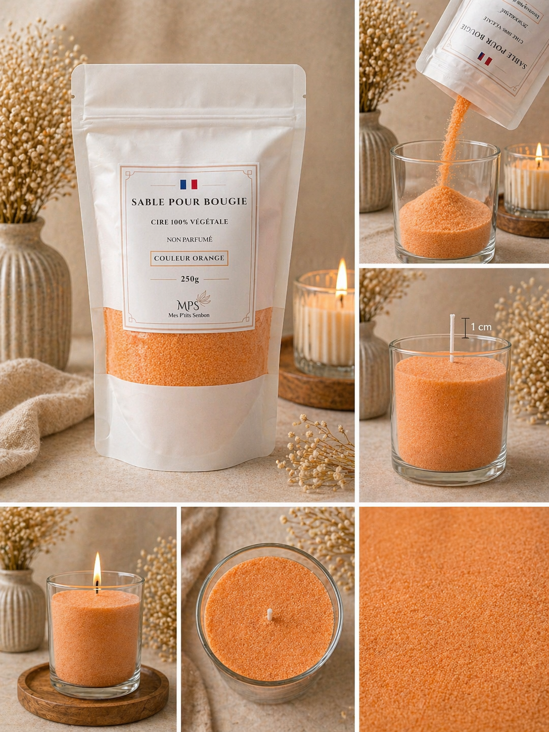Découvrez une nouvelle façon de créer vos bougies avec notre sable de bougie 100% végétal. Une alternative innovante aux bougies traditionnelles, pensée pour allier simplicité, élégance et liberté de création.